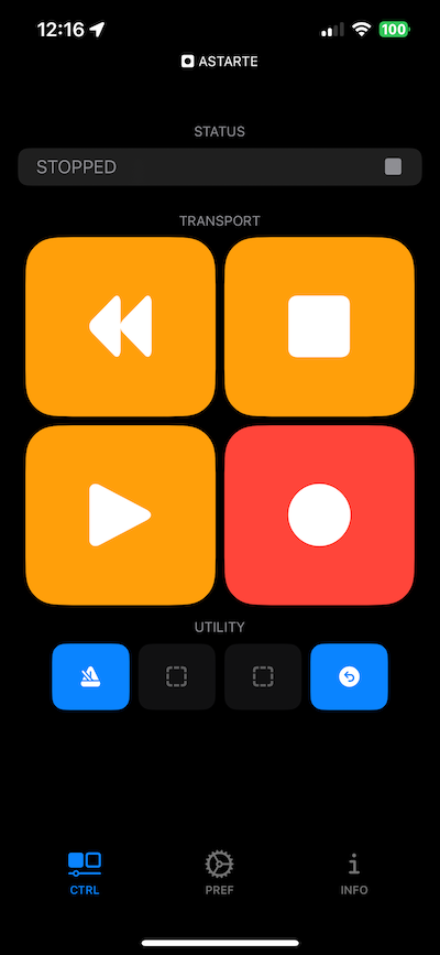 Astarte is a simple DAW control surface app. It brings some transport and utility functions to a device you already have in your pocket. Perfect for home and project studios, or any studio using a computer-controlled recording environment.